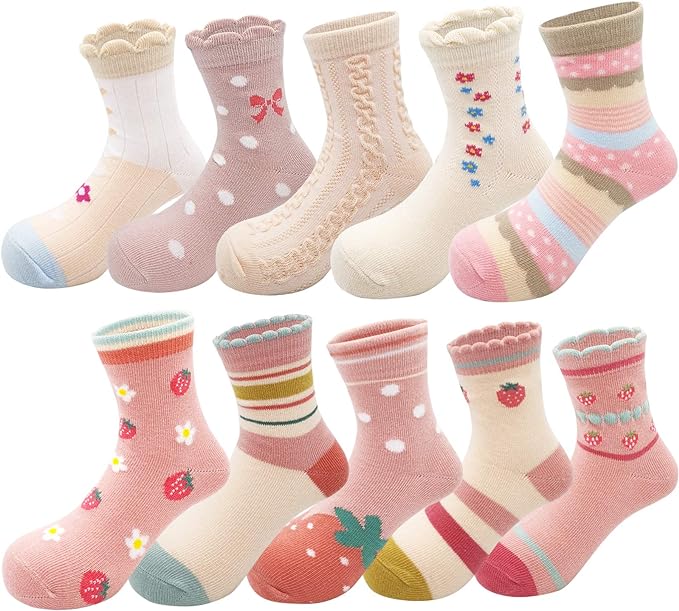 Toddler Kids Little Girls Cute Cotton Crew Socks 10 Pack