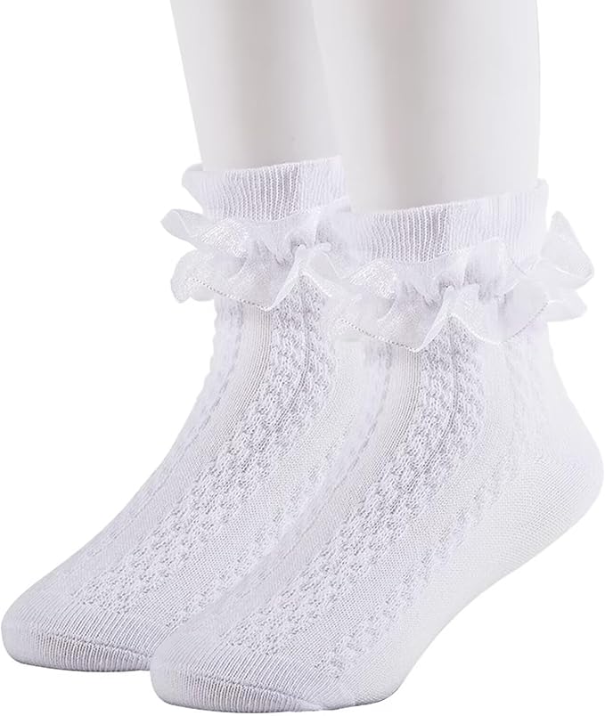 Girls Ruffle Socks Cotton Lace Socks Little Girls White Lace Ruffle Frilly Socks Dress Socks for Girl Toddler