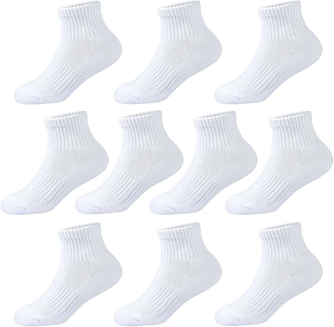 Kids Ankle Socks Boys Cushioned Athletic Short Socks Girls Cotton Quarter Socks Children Youth Women 10 Pairs