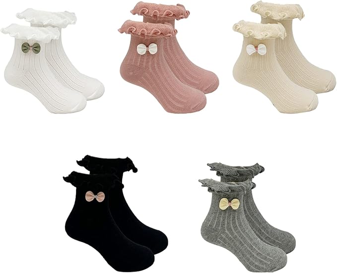 Girls Ruffle Bow Socks Big Little Kids Cotton Ankle Sock
