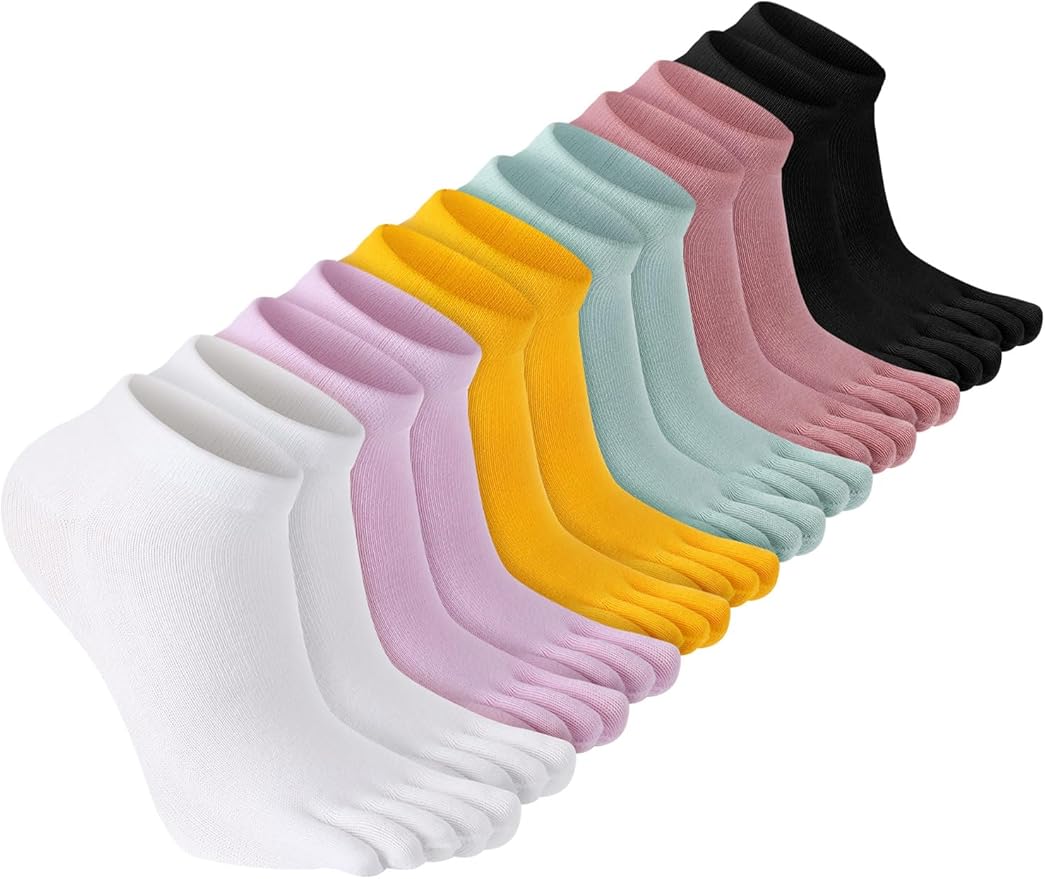 6 Pairs Women Toe Socks Cotton Compression Ankle Five Toe Sock Low Cut Athletic Running Socks for Women Men Kids