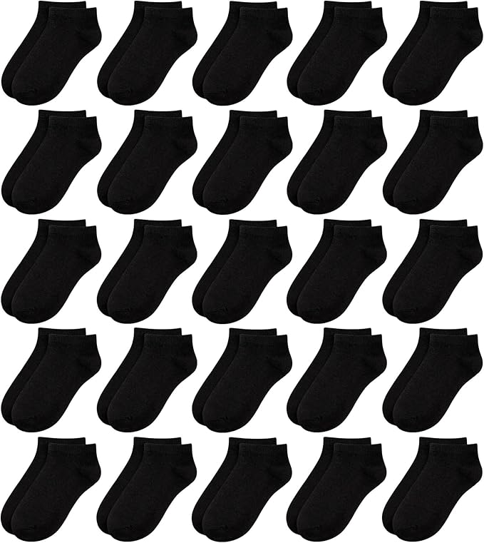 25 Pack Kids Low Cut Ankle Socks Boys Girls Half Cushion Athletic Socks