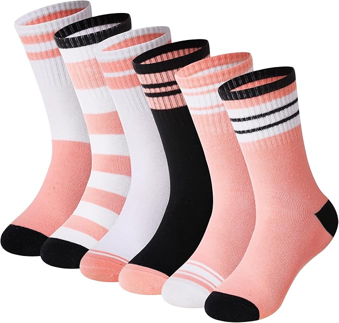 Kids Girls Socks Youth Teen Athletic Sport Basketball Crew Cotton Breathable Soft Socks 6 Pairs