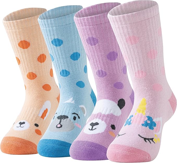 Girls Socks, Mid Calf Crew Socks 6 Pairs for Active Girls Boys Toddler Children 1-14 Years Old