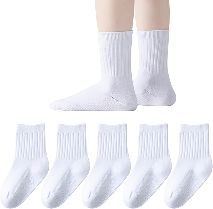 Unisex Kids Crew Socks Boys Dress Socks Soft Cotton Seamless School Uniform Socks for Girls White Navy 5 Pairs