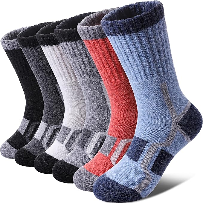 Kids Merino Wool Hiking Socks Toddlers Boys Girls Winter Warm Thick Thermal Boot Cushion Crew Socks 6 Pairs