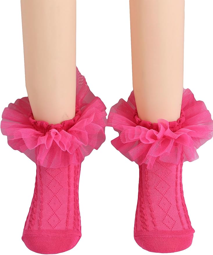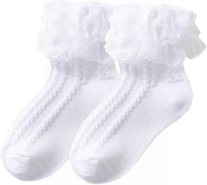 Girls Ruffle Socks Double Lace Frilly Dress Socks Kids Turn Cuff Socks for Toddler Little Girls 2/3 Pack