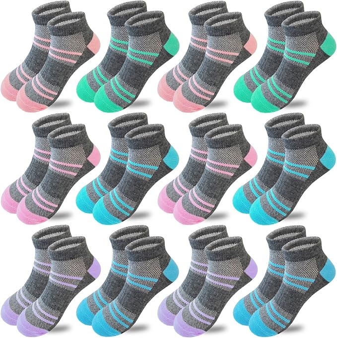 12 Pairs Girls Socks Kids Low Cut Ankle Athletic Socks Cotton Sports Socks