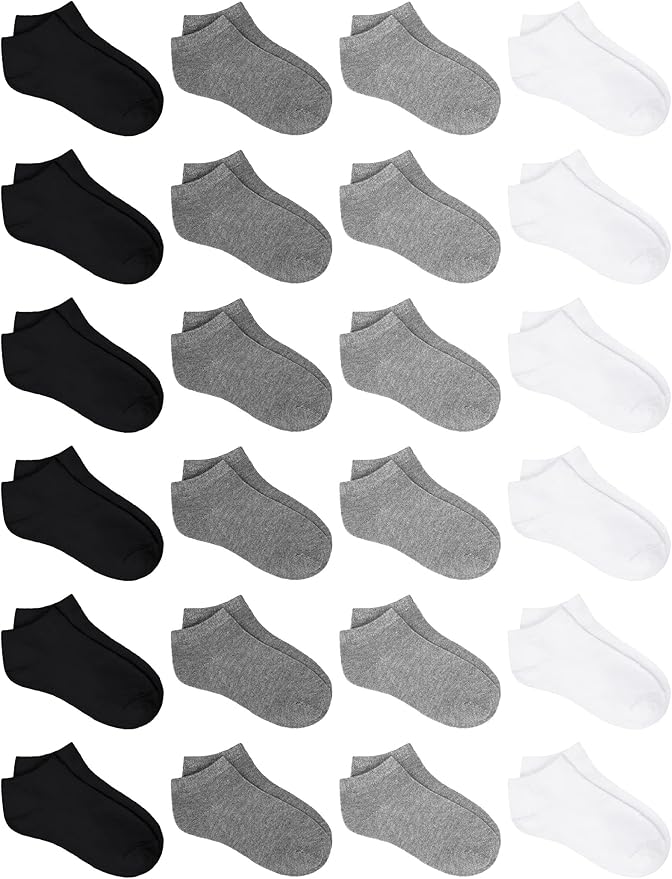 24 Pairs Kids' Low Cut Socks Boys' or Girls' Half Cushion Socks Athletic Ankle Socks