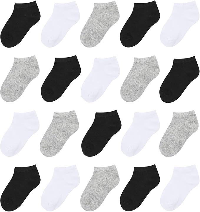 Toddler Kids Ankle Socks Low Cut Athletic Half Cushioned Socks for Little Big Boys Girls Kids 20 Pairs Soft Socks