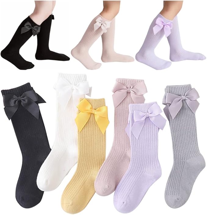 Little Girls' Knee High Socks Bow-Stitched Bows Long Stockings Casual & Dress Socks Cotton 6 Colors