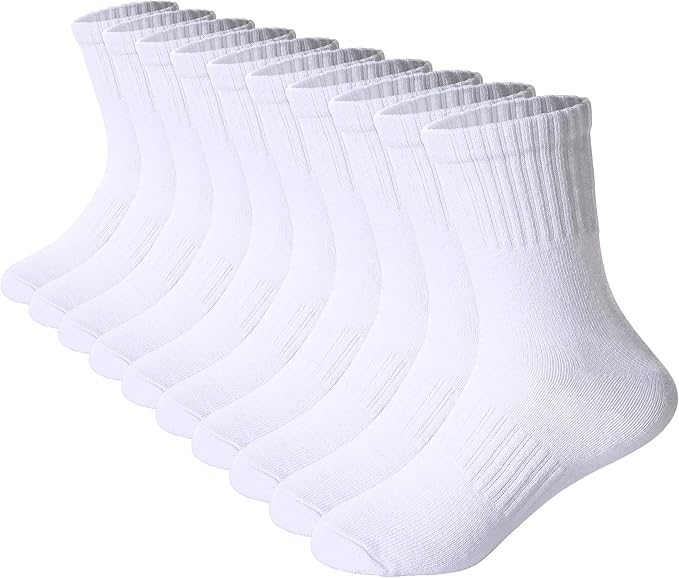 Kids Athletic Crew Socks Boys Girls Classics Cotton School Uniform Childs Sports Breathable Casual Socks 10 Pairs