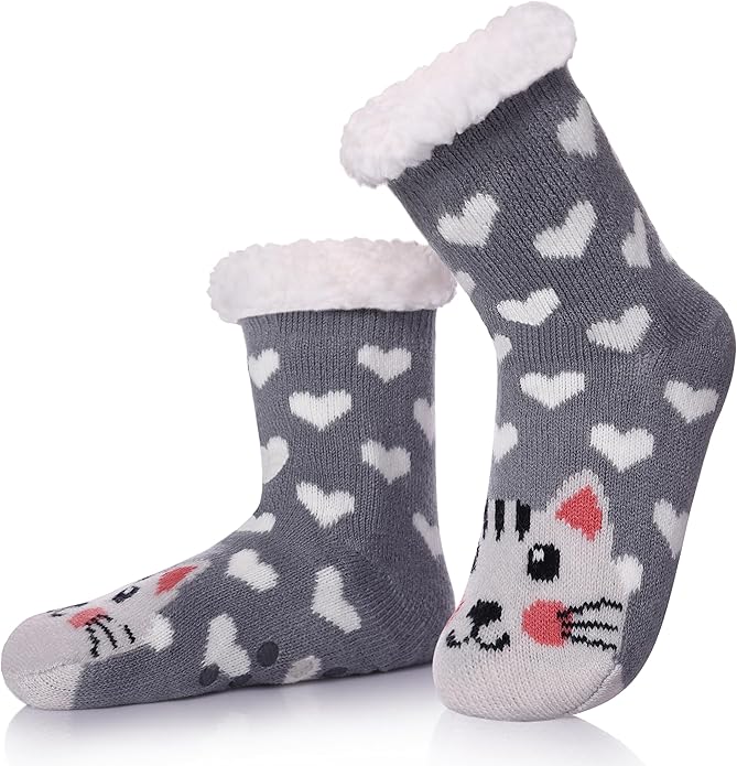 Kids Girls Boys Slipper Socks Soft Thick Cozy Fuzzy Animal Anti-Slip Winter Thermal Christmas Socks Indoor