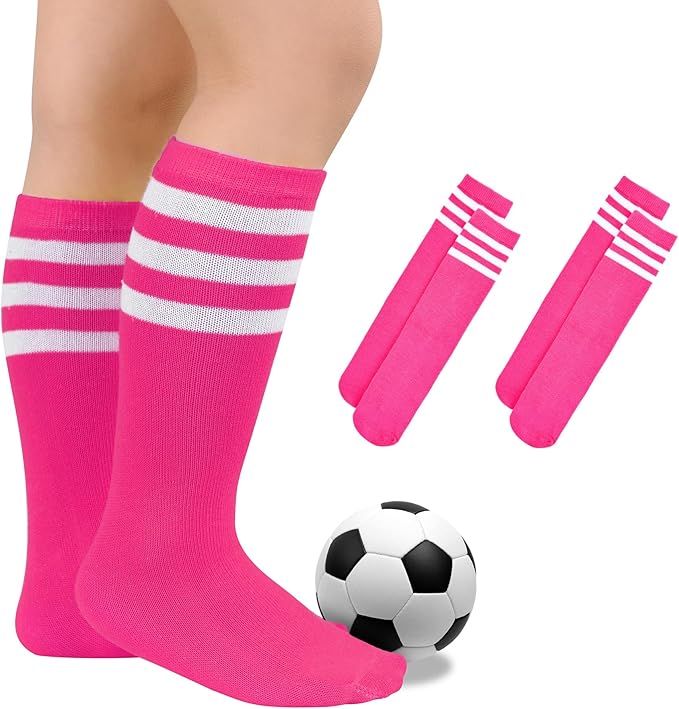 Kids Soccer Socks Youth Baseball Softball Socks for Girls Boys Stripe Knee High Tube Socks High Stockings