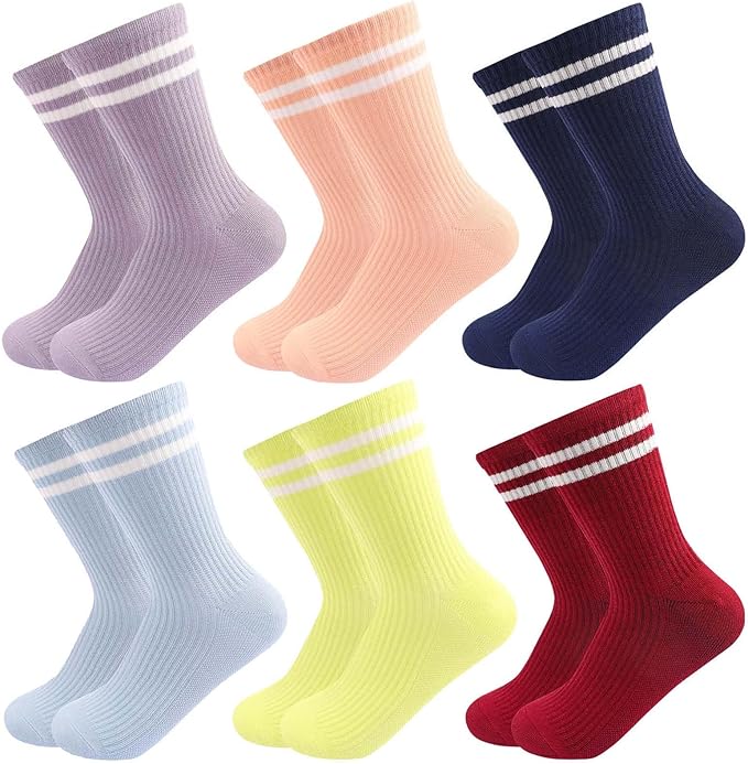 Kids Girls Socks Athletic Cotton Crew Sport Soft Breathable Socks 6 Pairs